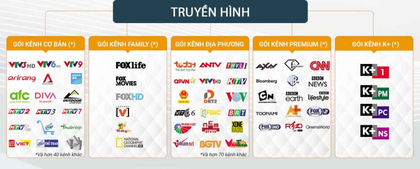Hiện tại, FPT Play Box có tới 100 kênh truyền hình cơ bản miễn phí cho mọi khách hàng sử dụng thiết bị. Sản phẩm còn có các gói kênh truyền hình mở rộng như gói kênh Quốc tế Premium, gói kênh VTVCab. Với những gói kênh này, khách hàng có thể xem được các chương trình hay, chất lượng cao bên cạnh các kênh truyền hình cơ bản đa nội dung hấp dẫn khác.